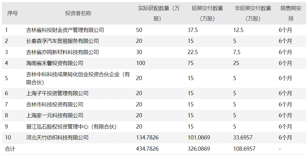 吉林碳谷的保荐机构为中信建投,公司精选层的发行价为6.50元/股。