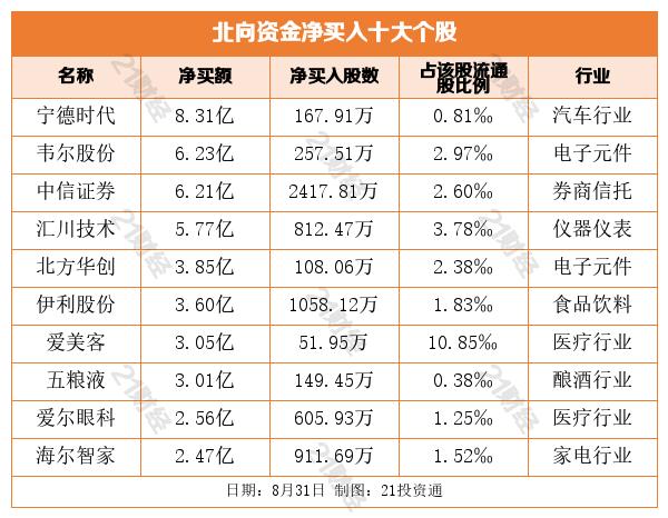 个股方面,宁德时代被净买入8.31亿元,中国平安被净卖出20.82亿元,贵州茅台被净卖出8.94亿元。