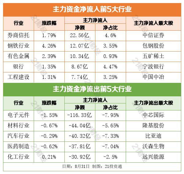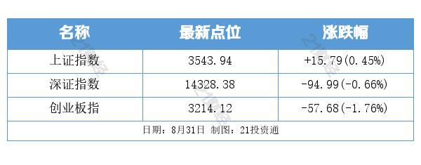 8月31日,三大股指走势分化,两市成交额连续第30个交易日突破万亿,医废处理、钛白粉、稀缺资源等板块领涨,煤炭、钢铁、有色大涨居前。