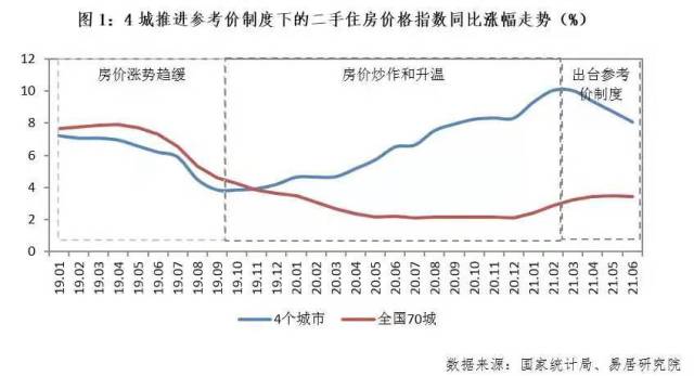 据易居研究院的研究,今年6月份,全国70个城市中,二手住房价格指数超过5%的共有25个城市,广州以13.2%的二手住房价格指数涨幅居首。当时,易居研究院表示,25个城市中有4个城市已经落实了二手住房参考价制度,预计“剩下的21个城市升级或推进的概率较大,尤其是一二线重点城市”。
