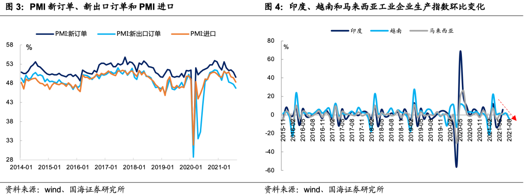 下一阶段,受欧美财政刺激退坡的影响,出口将延续回落趋势,但考虑到东南亚疫情尚未得到有效控制,出口在短期内仍将有一定的韧性。