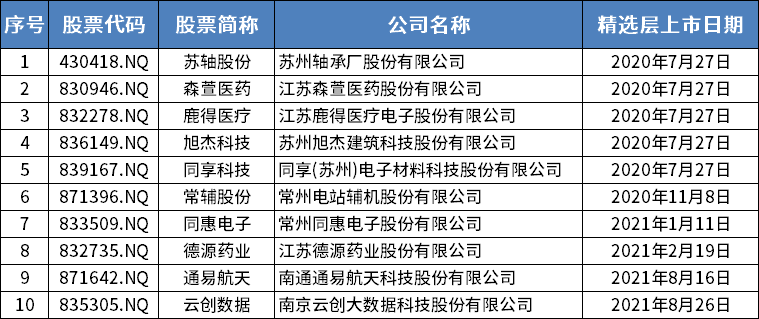 位于江苏的挂牌公司,包括苏轴股份、森萱医疗等在内共10家。