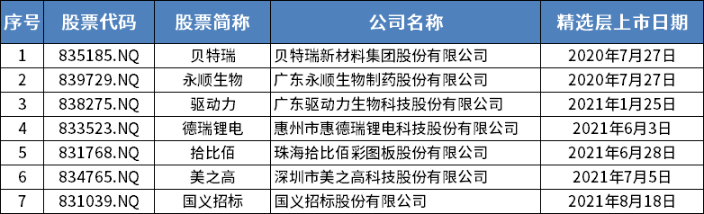 位于广东的挂牌公司,包括贝特瑞、永顺生物等在内共7家。