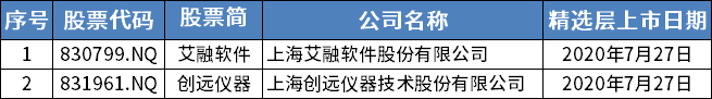 位于上海的挂牌公司,包括艾融软件、创远仪器在内共2家。