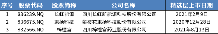 位于四川的挂牌公司,包括长虹能源、秉杨科技等在内共3家。