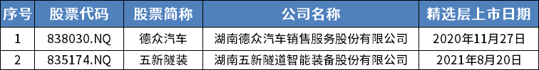 位于湖南的挂牌公司,包括德众汽车、五新隧装在内共2家。