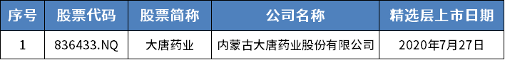 位于内蒙古的挂牌公司共1家,为大唐药业。