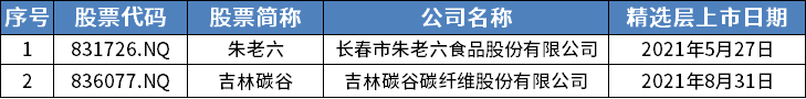 位于吉林的挂牌公司,包括朱老六、吉林碳谷在内共2家。