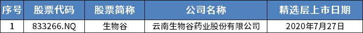 位于云南的挂牌公司共1家,为生物谷。