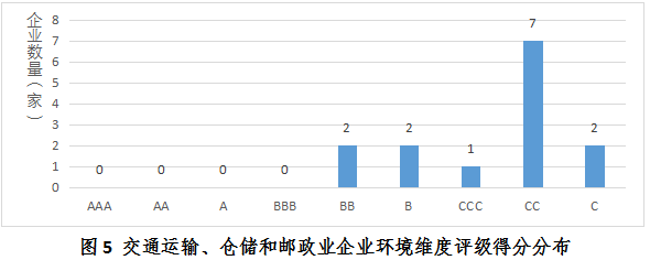(三)研究发现3:交通运输、仓储和邮政业环境信息披露水平较低,评级为中等及低分段企业占大多数