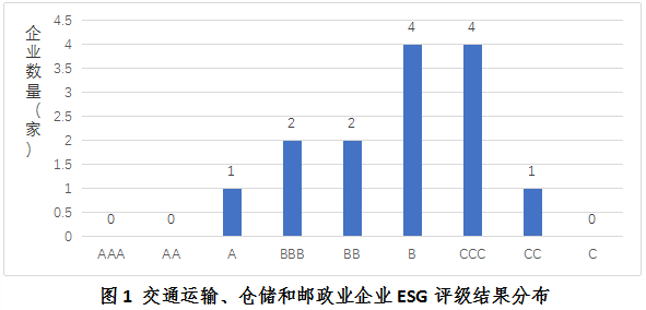 (一)研究发现1:交通运输、仓储和邮政业上市公司ESG整体水平表现不佳,行业均值为B级
