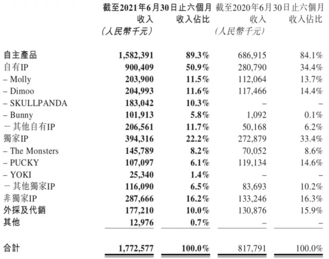 但就这份财报看,这些想法未有太多体现。目前,自主产品依然是泡泡玛特的主力。