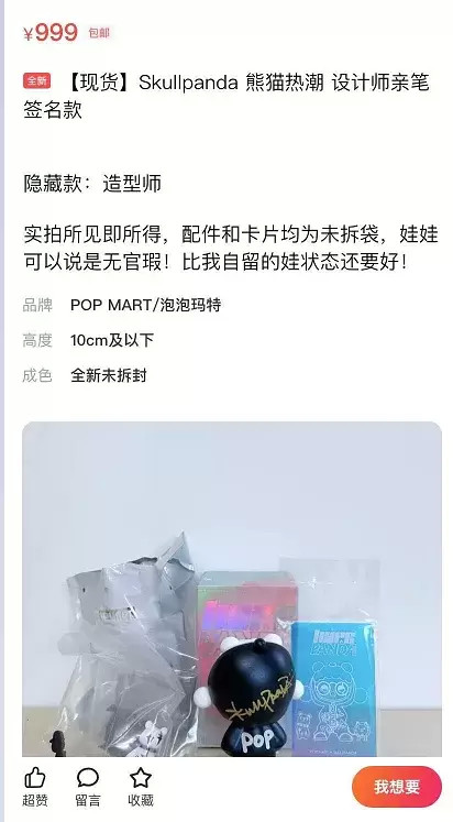 随着PTS的召开,泡泡玛特的销售额一路激增。其在天猫“超级品牌日”活动中就斩获了单日9406万元成交额的亮眼成绩,于去年年底上线的招牌IP产品Skull panda的盲盒隐藏款,在闲鱼售价近千元。