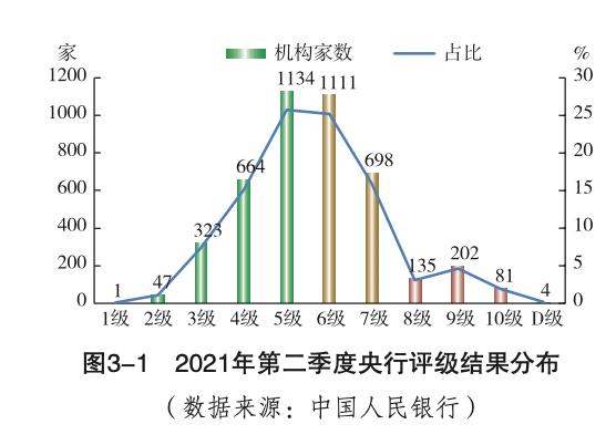 21世纪经济报道记者李愿 北京报道 9月3日,央行发布《中国金融稳定报告(2021)》显示,二季度,央行对4400家银行业金融机构(含大型银行24家、中小银行3999家、非银行机构377家)开展了央行金融机构评级。