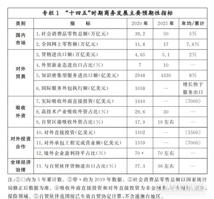 万中心指出,中国货物贸易在“十二五”、“十三五”期间的年均增速分别为7.6%、2.6%,《“十四五”商务发展规划》的预期目标是,“十四五”期间年均增长2%。