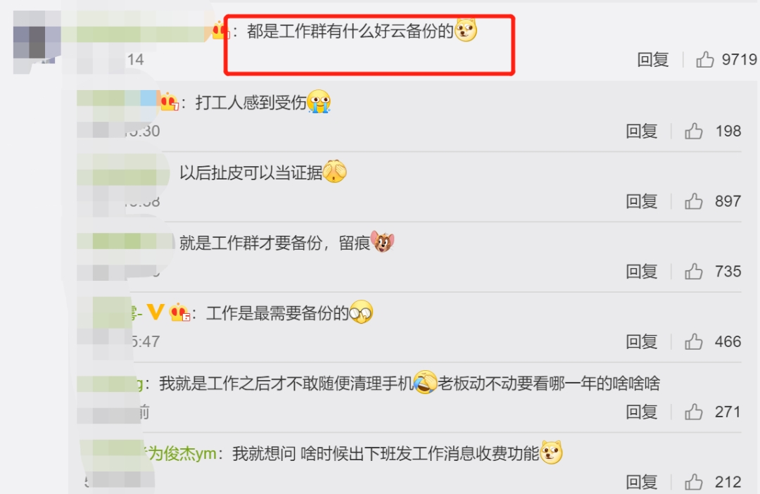 还有打工人认为:都是工作群没什么好云备份的。