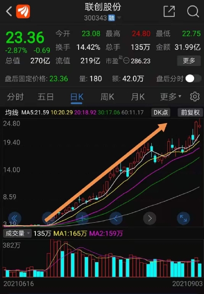 联创股份起涨肇始于7月初,彼时股价还在3.3元附近徘徊,与年初相比涨幅只能说中规中矩。但过去的两个多月联创股份经历了多次20%涨停,沿着5日10日均线一路拉升,短期涨幅接近6倍。