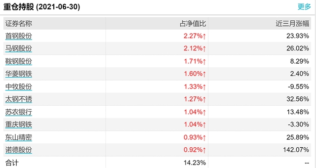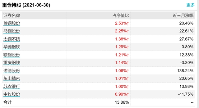 和华商丰利增强定开A相比,这只基金在债券、股票的投资比例上不尽相同,但十大重仓股同样包括首钢股份、马钢股份等。