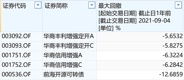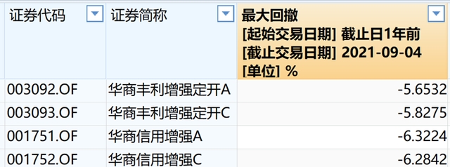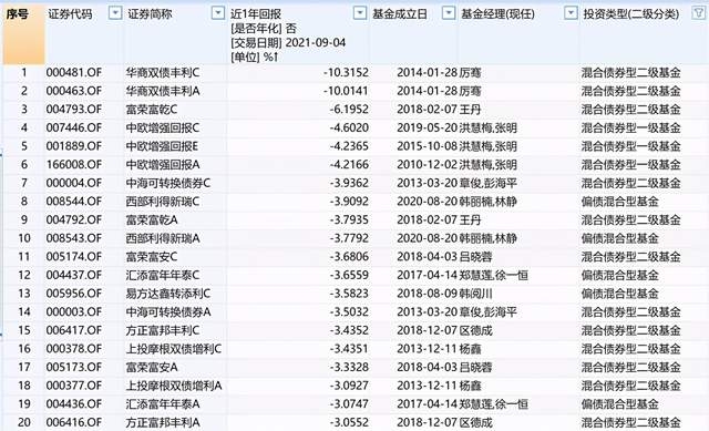 比如,近一年业绩中(截至9月4日),排名最后的华商双债丰利A,亏损幅度达到10.32%。