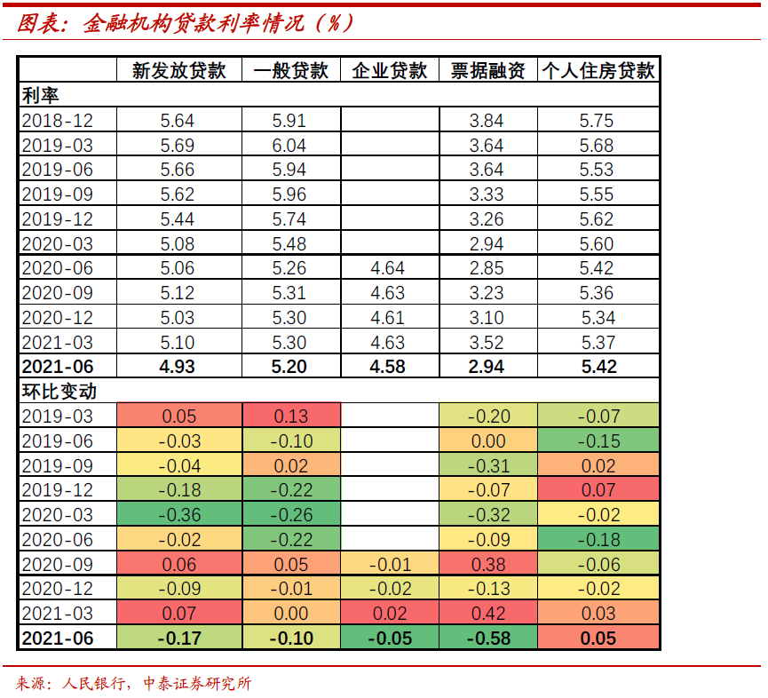 对价格的指导:引导贷款利率下行,同时管控存款利率:资产端贷款利率通过定价机制完善和价格指导,新发放贷款利率保持下行趋势。监管一方面推动金融机构健全运用LPR定价机制,持续释放LPR改革潜力;另一方面推动消费贷等产品明示贷款年化利率,保障金融消费者切身利益。2021年6月除新发放按揭贷款利率维持上行趋势,企业、票据、总贷款的新发放利率均环比下降。