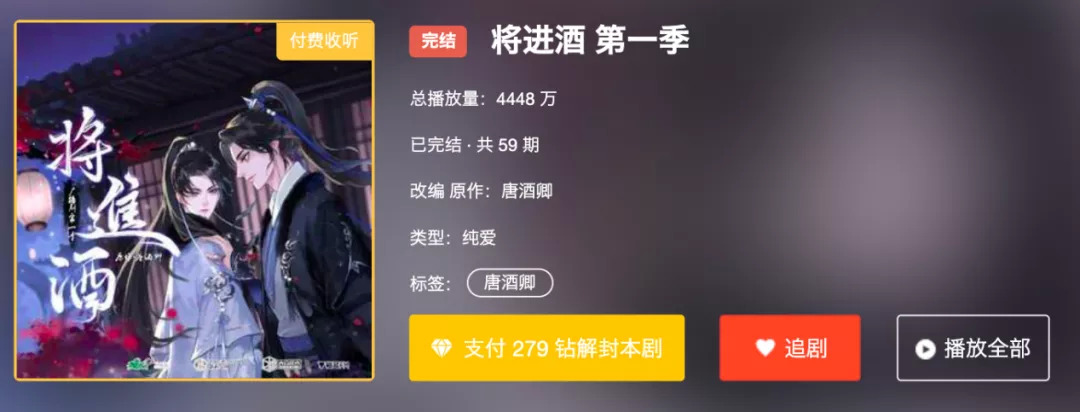 事实上,当下不少用户的付费热情,也有相当一部分是为IP而非广播剧本身买单。