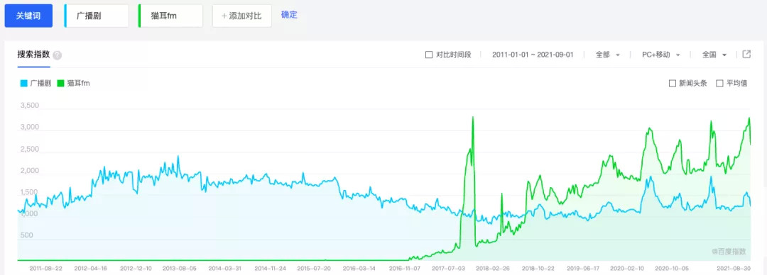 (“广播剧”、“猫耳FM”等指数近年不时出现小高峰)