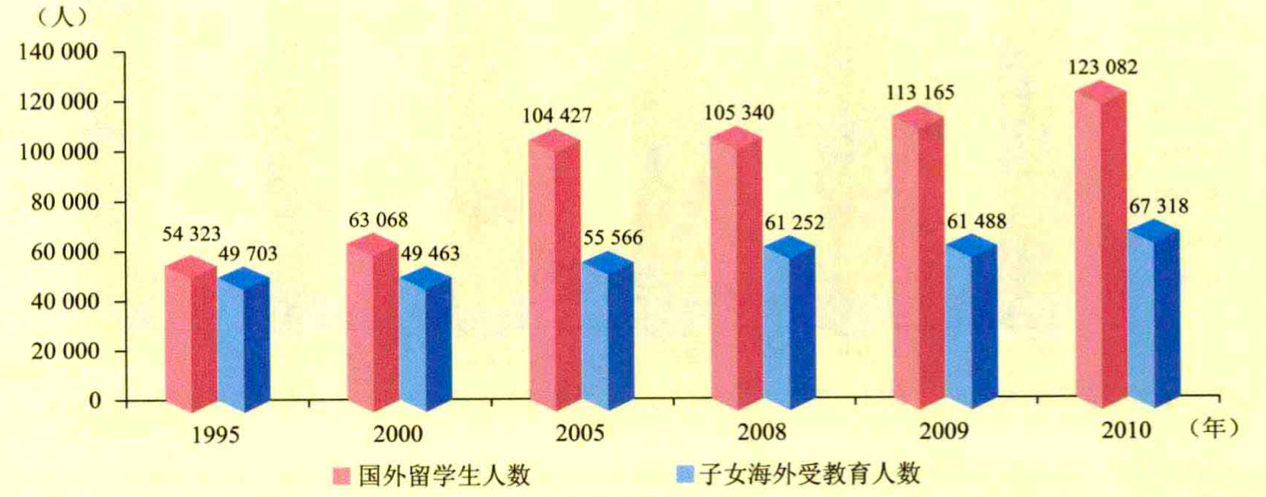 同时也缓解了受少子化影响学校招生规模不断下降的状况。在日本大量吸引留学生的同时,日本家庭也将自己的子女送到国外接受教育。2010年子女到海外受教育的人数比1995年增加35%。