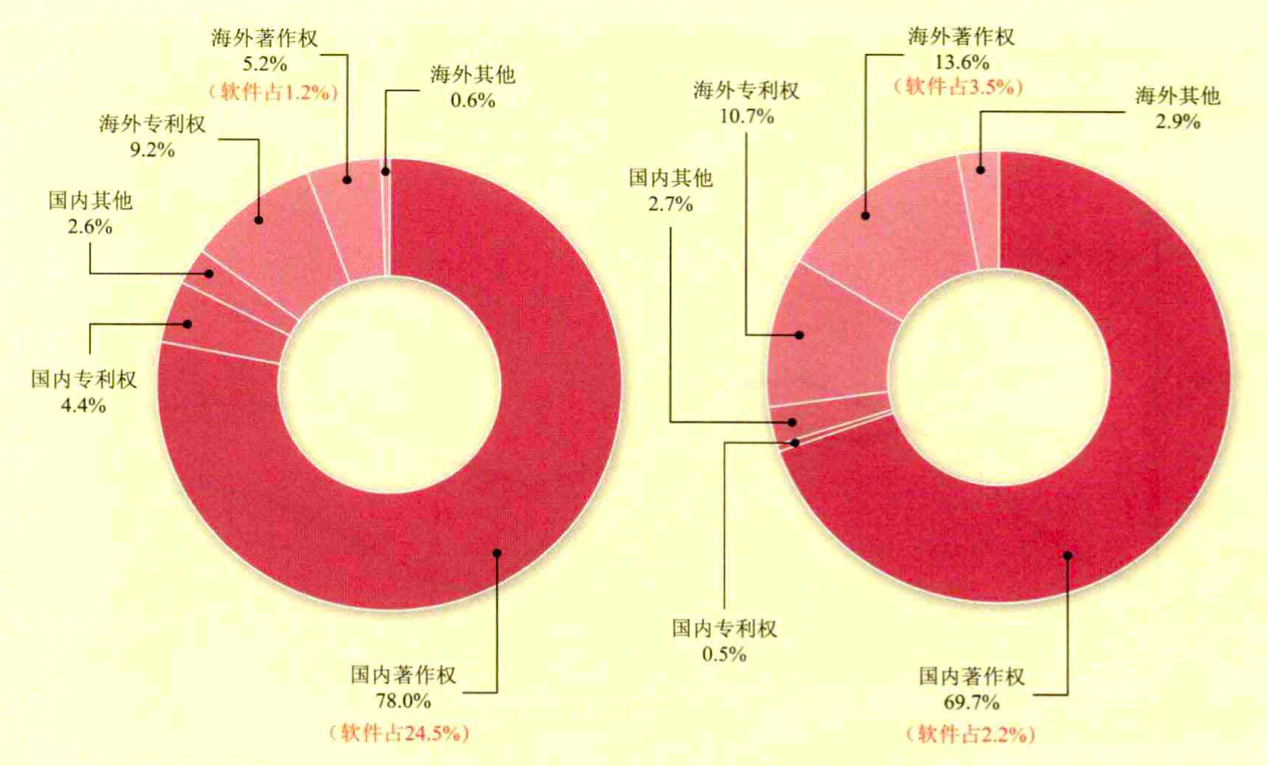 拥有信息通信企业专利权的企业为478家,占调查企业的10.9%,共有专利26716件,使用的比例达到69.3%,其中自己研发的比例达到98.3%。在技术交易中,共收取金额779亿日元,国内外企业分别为661亿日元和118亿日元,其中著作权占83.2%、专利权占13.6。 交易中支付的金额为1 967亿日元,支付给国内、外分别为1 433亿日元和534亿日元,其中著作权占83.3%、专利权占11.2%。