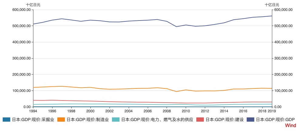 按当前价格计算,2020年全年,日本全社会完成的名义GDP为5393135亿日元,与上年相比,剔除物价变动因素后,同比实际下降4.8%——折合美元约为5.05万亿,继续是全球第三大经济体。