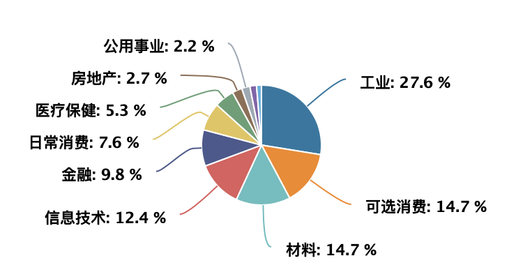 在日本共选取20家代表性上市企业,由于丰田汽车的领先地位,导致在按市值分类时,可选消费的占比较高。同时,从宏观角度来看,日本的上市企业发展主要集中在信息技术和可选消费行业。
