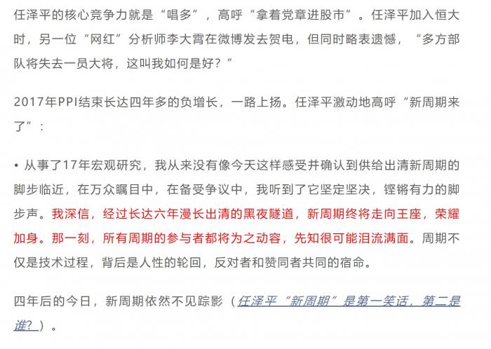 例如,2017年PPI结束长达四年多的负增长,一路上扬,任泽平激动地高呼“新周期来了”。但是四年后的今日,新周期依然不见踪影。