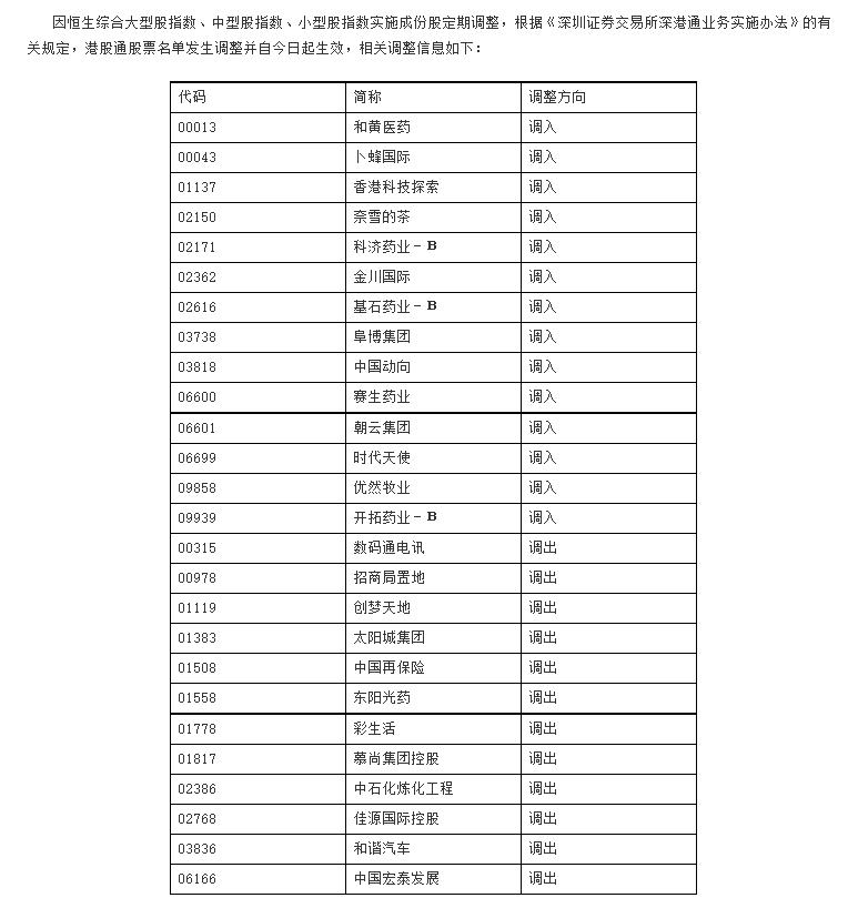 9月7日,资本邦了解到,昨日深港通股票名单根据多支恒生指数成分股调整的结果,做出相应调整并于当日生效。