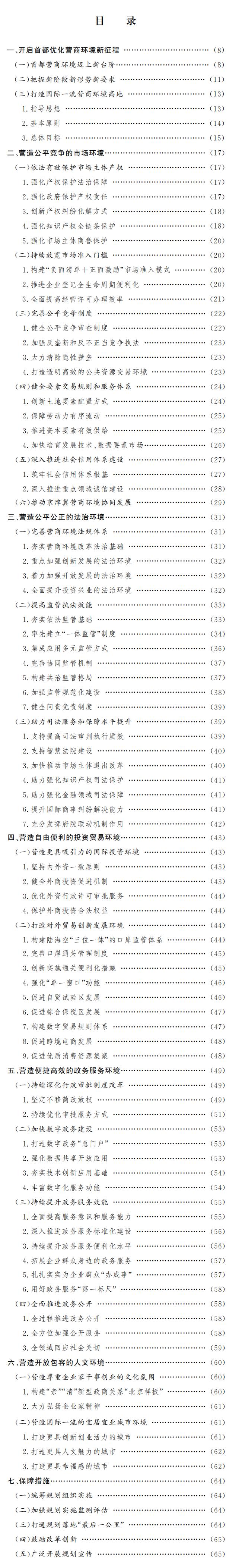 (一)完善营商环境法规体系。围绕企业全生命周期,聚焦重点领域、新兴领域,加快完善具有首都特色、科学完备的营商法规体系,为持续深化营商环境改革提供有力法治保障。