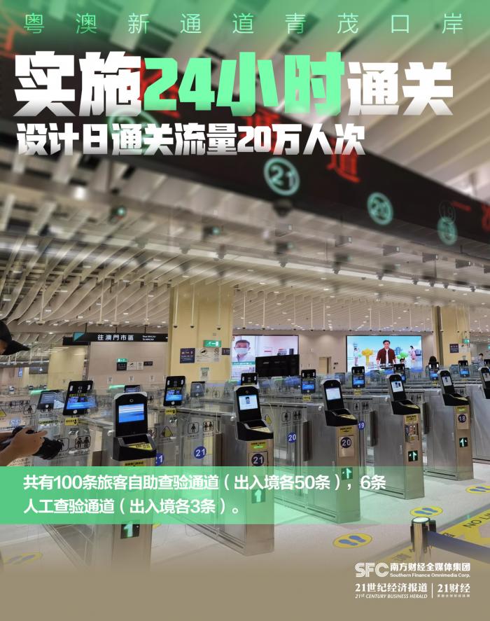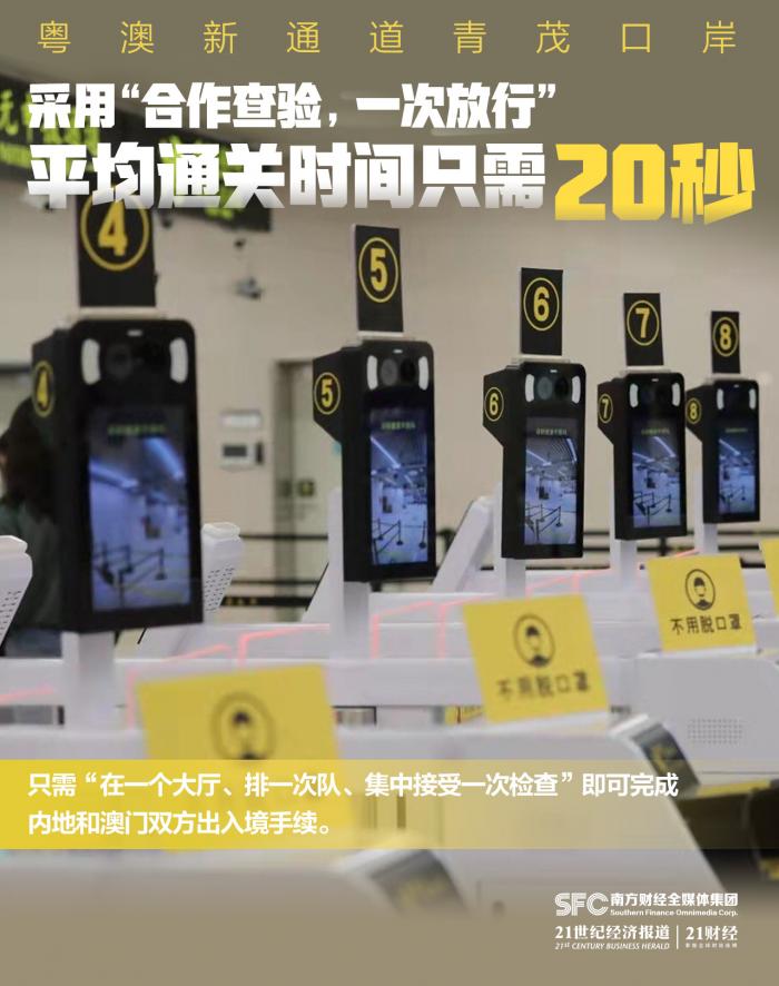 9月8日,粤澳新通道青茂口岸正式开通。该口岸实施24小时通关,采用“合作查验,一次放行”,同一大厅完成两关一检,平均通关时间只需 20 秒!