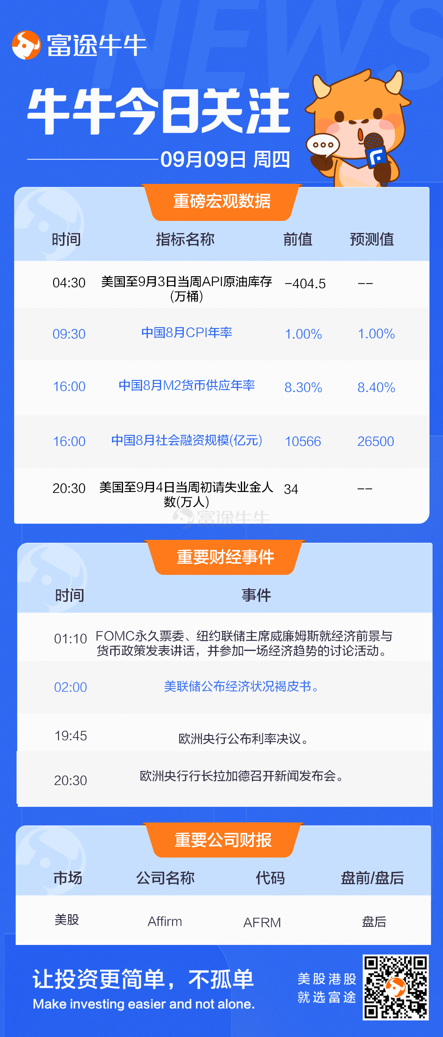关键词:中国通胀、中国8月M2、欧洲央行决议、美国初请