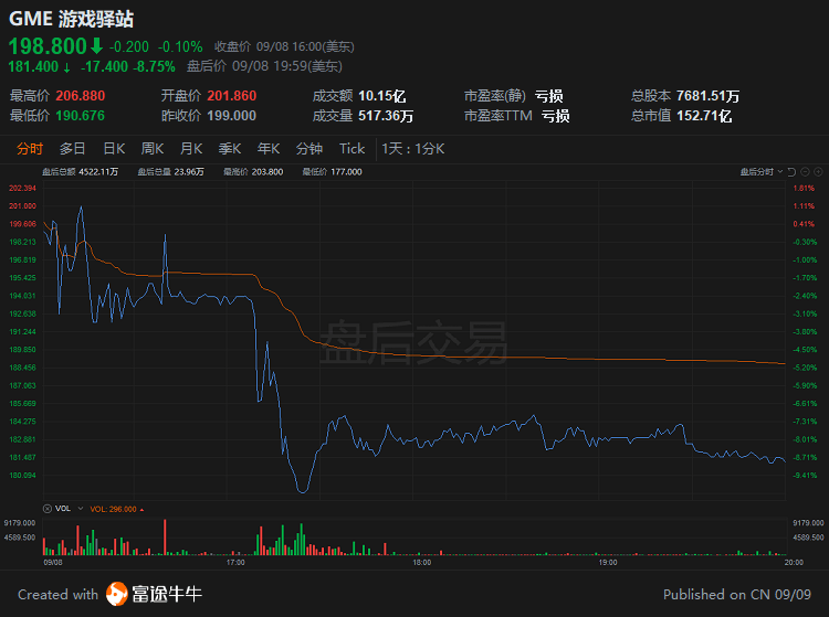 游戏驿站第二季度净销售额11.8亿美元,盘后跌近9%
