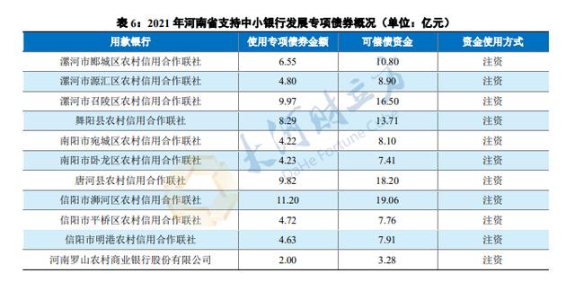 21世纪经济报道记者 上海报道 河南省9月10日公布的债券发行信息显示,2021 年河南省支持中小银行发展专项债券发行规模257亿元,期限为10 年。资金用途方面,本期债券募集资金通过河南投资集团有限公司间接入股方式,定向对河南省内18 家农村信用合作联社和22家农村商业银行股份有限公司注资,用于补充其核心一级资本。