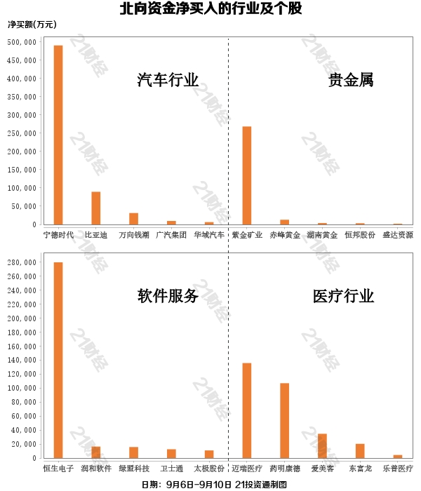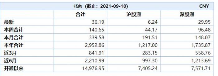 据21投资通(微信号ID:touzit21)智能监测,9月10日,北向资金净买入36.19亿元,其中沪股通净买入6.24亿元,深股通净买入29.95亿元。