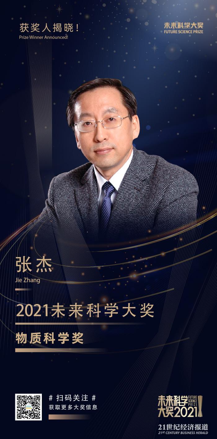 张杰因其通过调控激光与物质相互作用产生精确可控的超短脉冲快电子束,并将其应用于实现超高时空分辨高能电子衍射成像和激光核聚变的快点火研究的贡献获得“物质科学奖”。