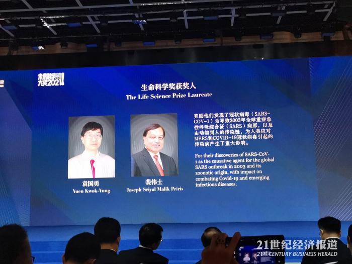 21世纪经济报道 记者 夏旭田 北京报道 9月12日,有着“中国诺贝尔奖”之称的未来科学大奖在京揭幕获奖者,21世纪经济报道在揭幕现场获悉,冠状病毒SARS及其传播链的发现者——香港大学袁国勇、裴伟士获得了生命科学奖。