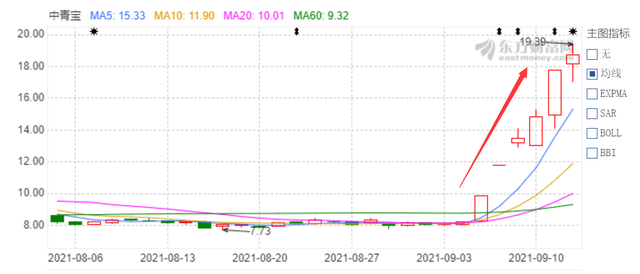 从6日起至13日收盘,中青宝股价已从8.2元/股涨至17.77元/股,一周时间翻了一倍有余。