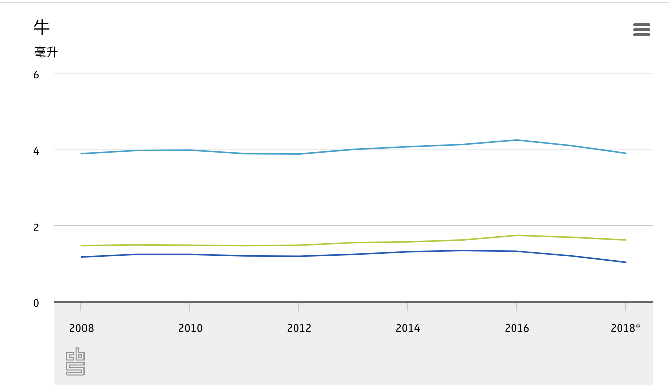 2018年牛的数量达到390万头。这比 2016 年的高峰年减少了 10%。由于取消了牛奶配额,奶牛和小牛的数量在 2014 年至 2016 年间尤其增加了(+11.8%)。这在一定程度上导致了2015年和2016年超过了磷酸盐上限。在磷酸盐减量计划实施后,奶牛群萎缩,磷酸盐产量在接下来的两年内回落到欧盟设定的上限以下。