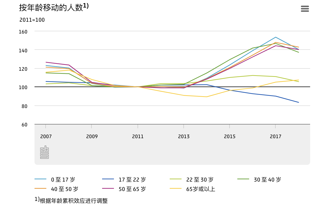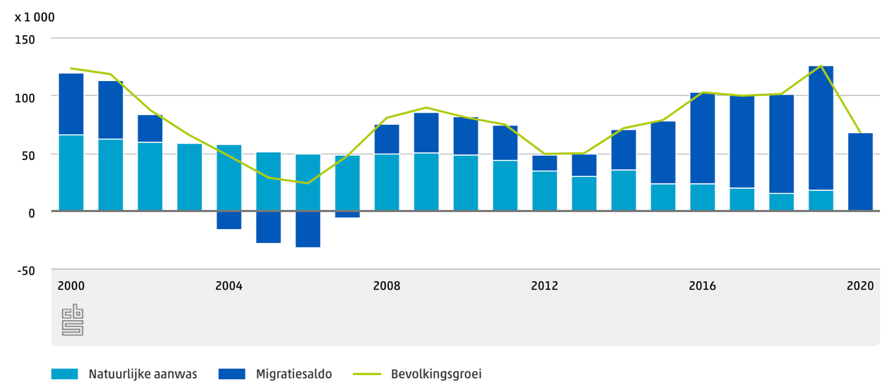 当移民人数多于移民人数以及出生的孩子多于死亡人数时,人口就会增长。2020年,通过国际移民(移民减去移民)增加了68359人,通过自然增长(出生减去死亡)增加了3人。直到 2014 年,人口增长主要是由自然增长引起的,然后主要是由迁移引起的。