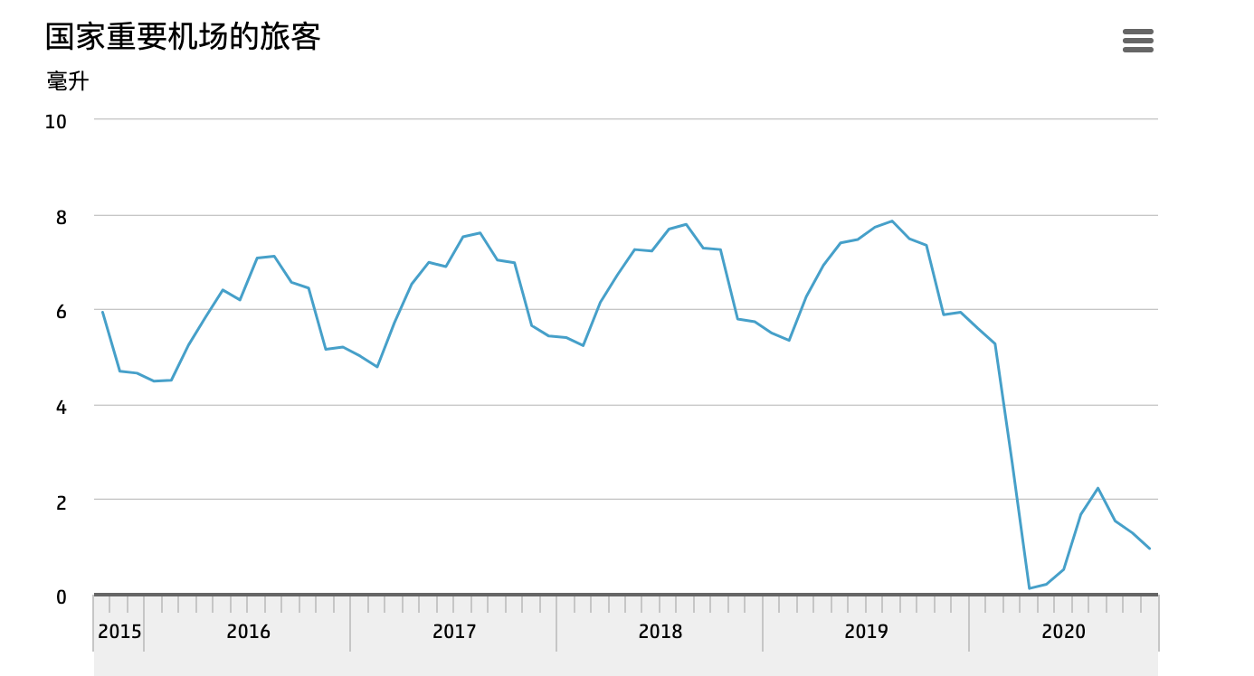 冠状病毒危机对空中交通的影响甚至超过了过夜住宿。2020年3月份空中交通量已经急剧下降,4 月份几乎处于停顿状态。当时有13.4 万名乘客,而2019年同期为690 万人次。此后确实有所增加,但从未超过一年前的三分之一。从 2020年1 月到 11 月,荷兰机场的航空旅客比一年前减少了70%:总共有略多于2200 万的 旅客.