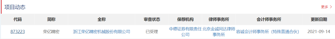 9月14日,荣亿精密(873223)精选层申请材料获受理。