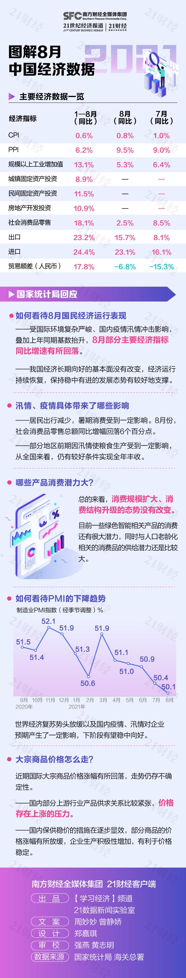 图解中国8月经济数据:汛情疫情、PMI下降、大宗商品价格等热点问题,统计局都回应了!