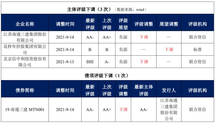 9月14日,联合资信公告称,决定将江苏南通三建集团股份有限公司主体信用等级由“AA+”下调为“AA-”,同时将“19南通三建MTN001”信用等级由“AA+”下调为“AA-”,评级展望维持负面。