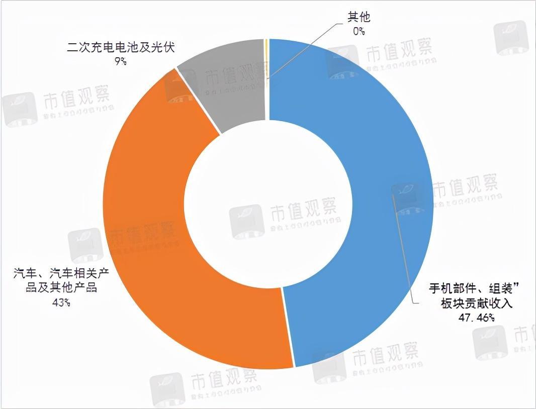 上半年,比亚迪三大板块业务中,“手机部件、组装”板块贡献收入431.32亿元,占总营收47.46%;“汽车、汽车相关产品及其他产品”贡献收入391.57亿元,占总营收43.08%,“二次充电电池及光伏”贡献收入82.87亿元,占总营收9%。这些都是实打实地卖硬件。