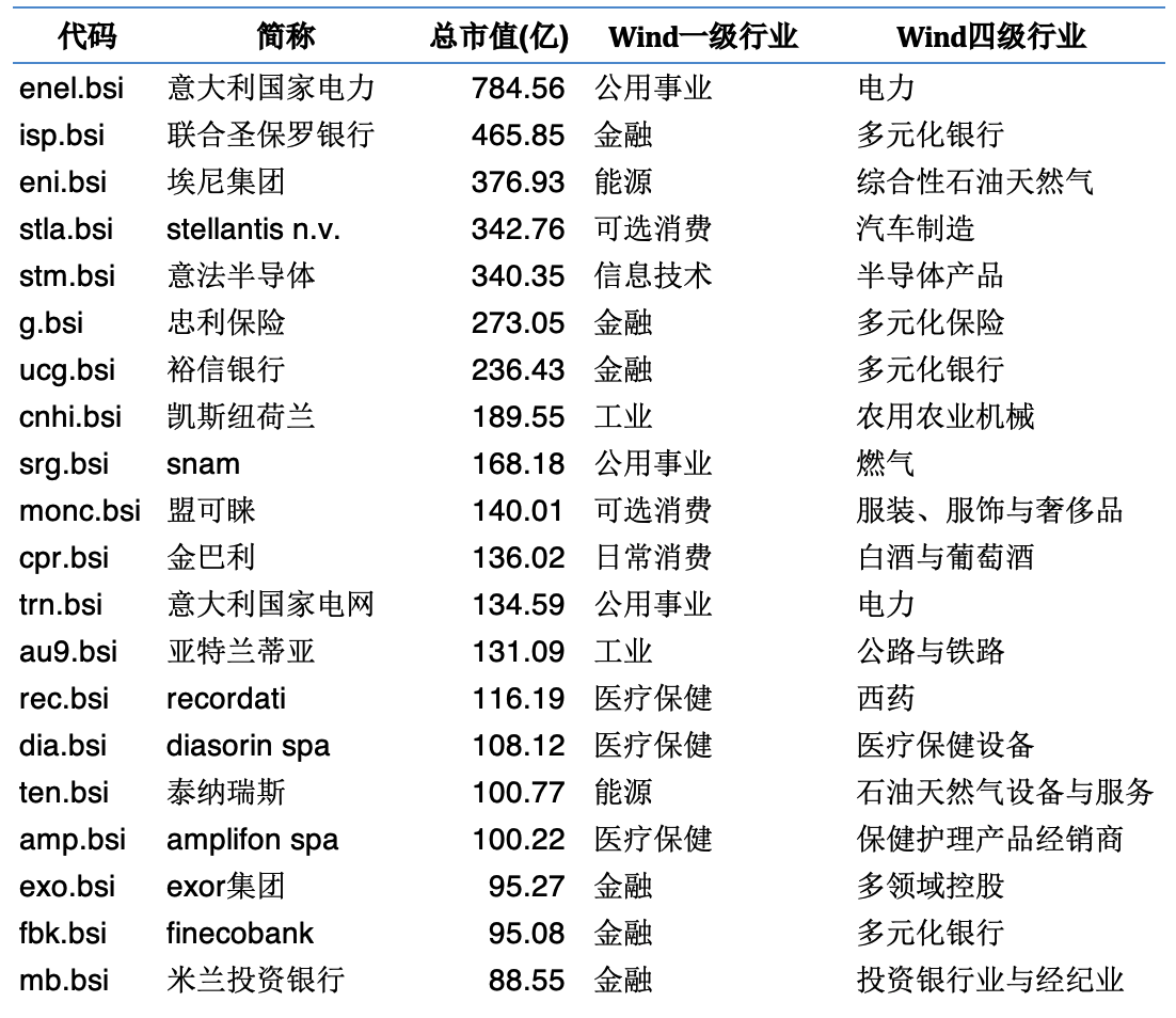 表 意大利富时MIB指数上市公司(按市值降序排)