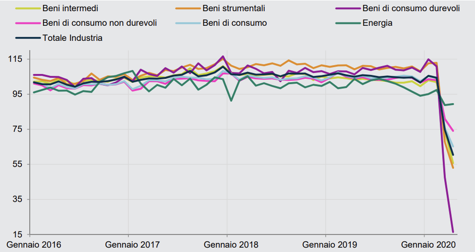 4月份公布的零售销售详情证实了上述转移。这个与上月相比,销售额显著下降(-11.4%),非食品销售(-24.5%)和食品(-0.4%)。非食品产品中最显著的收缩,涵盖鞋类、家具、纺织品、家具、服装和毛皮。相反,与2019年4月相比,电子商务持续增长(+27.1%)。